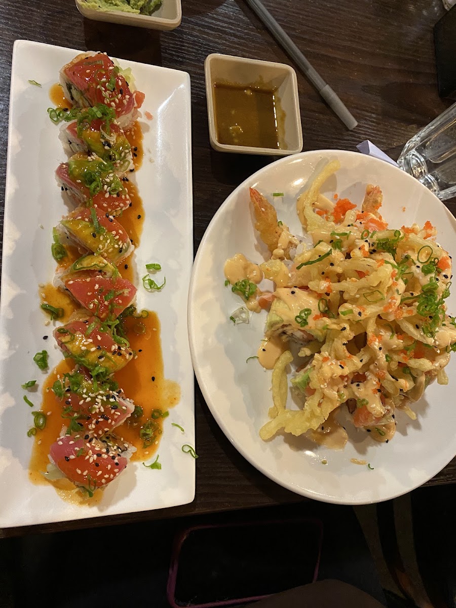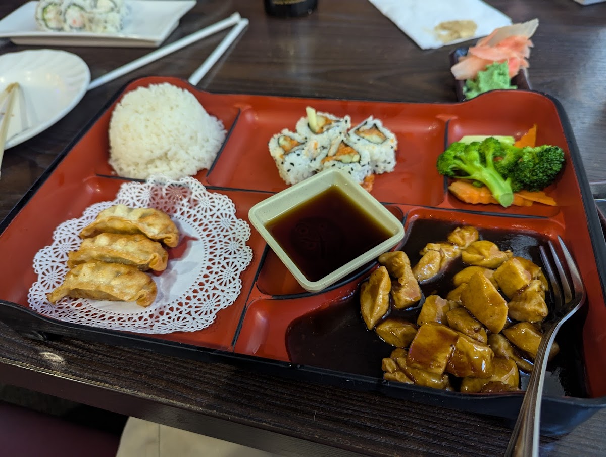 I've never liked sushi before when I've tried it but I met some family here and now I like it. Everything was fresh and flavorful and plated beautifully. It looked delicious and tasted even better. The service was good, attentive and very friendly and polite. I got a teriyaki chicken platter which came with two sides (I chose tuna roll and fried gyoza) and everything was delicious. I also got a Mountain Roll which was also phenomenal. Everything was very filling and everyone went home happy!