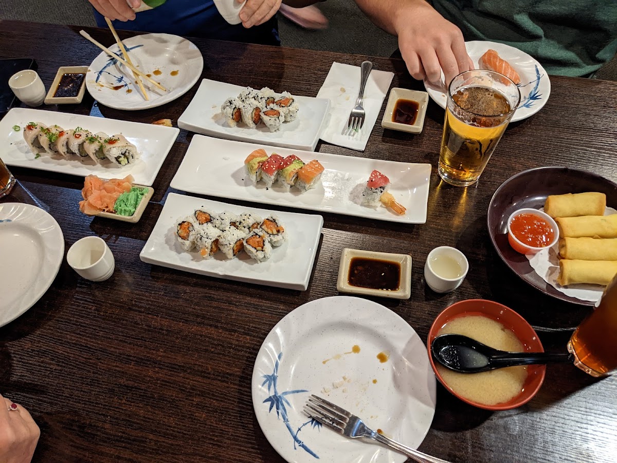 Stopped in around Noon on a Wednesday and there were only a few people there. We sat at the bar and ordered 4 rolls with an additional 2 California rolls to go for our kids. The food came out very fast and was good for the price. It's not the best sushi we've ever had, but we'll definitely be back.